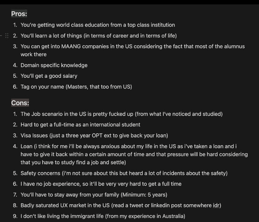 spent a lot of time stressing on the applications for my masters and writing SOPs and reiterating on them
