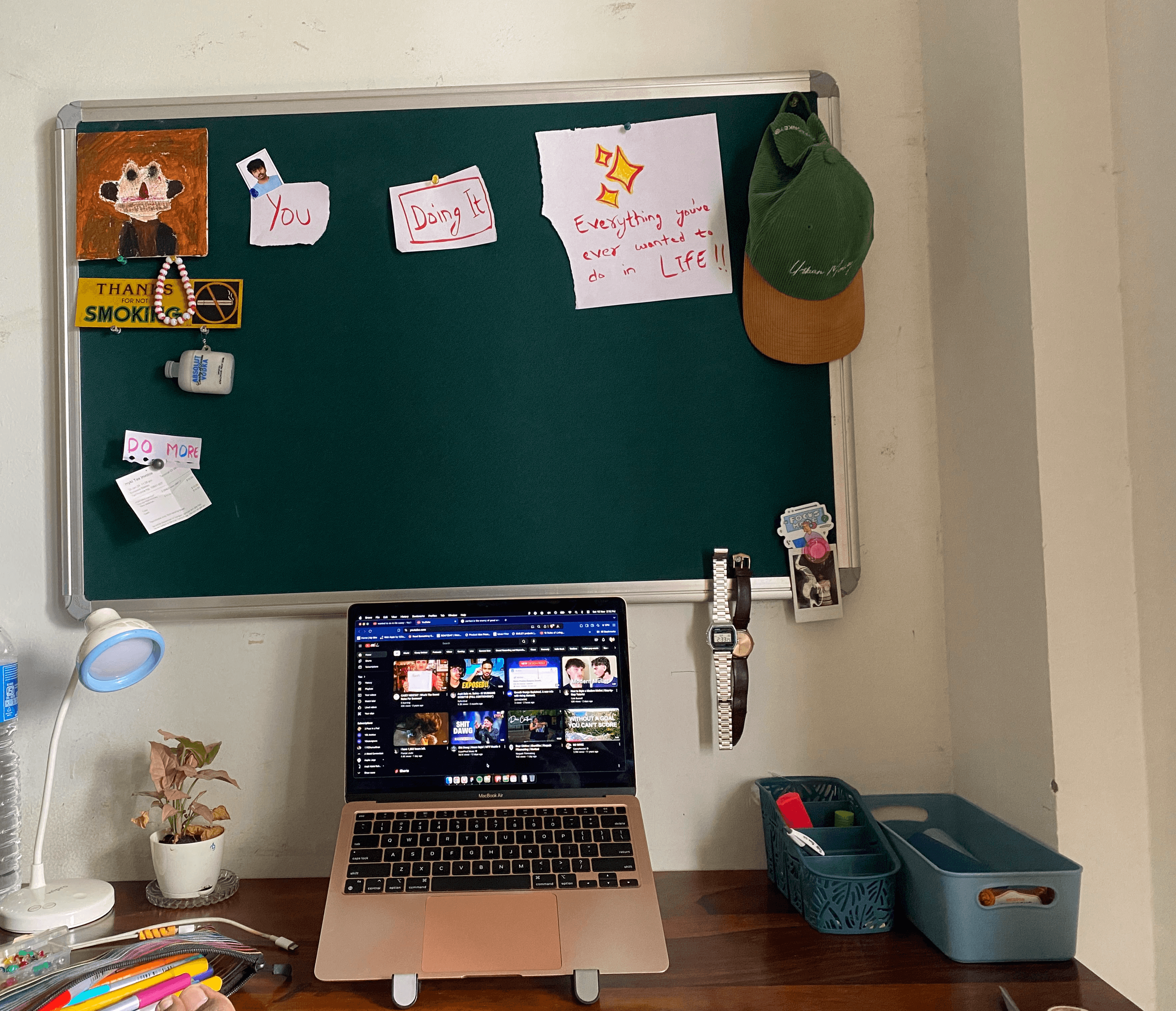 setup a push pin board on the wall, 10/10 would definitely recommend it.